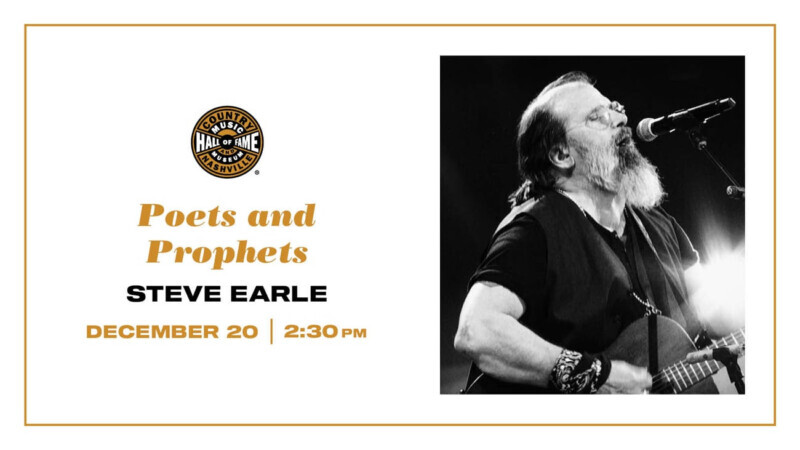 The Country Music Hall of Fame® and Museum will feature Steve Earle in the next installment of its in-depth interview series Poets and Prophets. The series features songwriters who have made significant contributions to country music. The program will take place on Saturday, Dec. 20, at 2:30 p.m. in the museum’s Ford Theater and is included with museum admission.