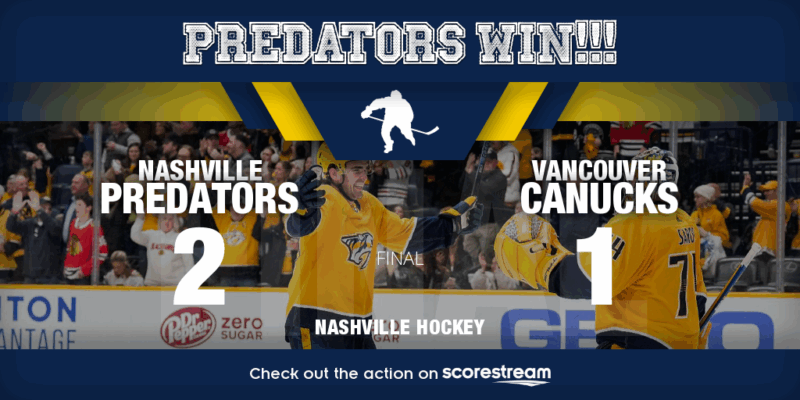 Nashville seized the lead when Cole Smith scored at 5:09 of the third period, with assists from Michael McCarron and Justin Barron. The goal proved to be the game-winner as both goaltenders locked down for the remainder of regulation.