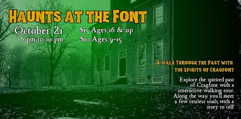 Take a lantern tour along the trail from the historic tobacco barn to the Cragfont mansion looming in the distance, enshrouded in darkness. Guests will interact with a number of “restless souls” from the home’s spirited past. Dressed in period clothing, each “ghostly” visitor will have brand new spine-tingling stories to tell this year. Before and after the haunted walk, there will be servings of apple cider by the fire, ghost stories and the soothingly spooky sounds of historic murder ballads performed by the Traveling Caudells. This event is selling fast, so those planning on attending need to make sure to purchase tickets as soon as possible to ensure they get the time they want.