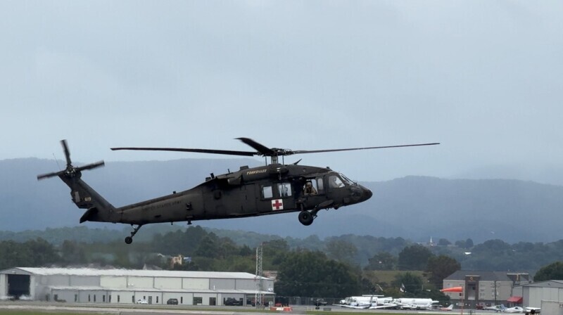 At approximately 12:00 p.m. on Friday, September 27, TEMA was notified more than 50 hospital staff members and patients were trapped at the Unicoi County Hospital due to severe flooding. Within the hour, the Tennessee National Guardsmen assigned to the 1-230th Assault Helicopter Battalion, in Knoxville, assembled three UH-60L Blackhawk helicopters and crew for aerial rescue operations. Once the weather cleared shortly after 1:00 p.m. the mission was approved, and the aircraft departed Joint Base McGhee-Tyson to join the Virginia State Police, who had been requested by TEMA through the national, state-to-state mutual aid program, Emergency Management Assistance Compact. Through their combined efforts, the staff and patients were transported to a local high school and the mission completed at 3:08 p.m.