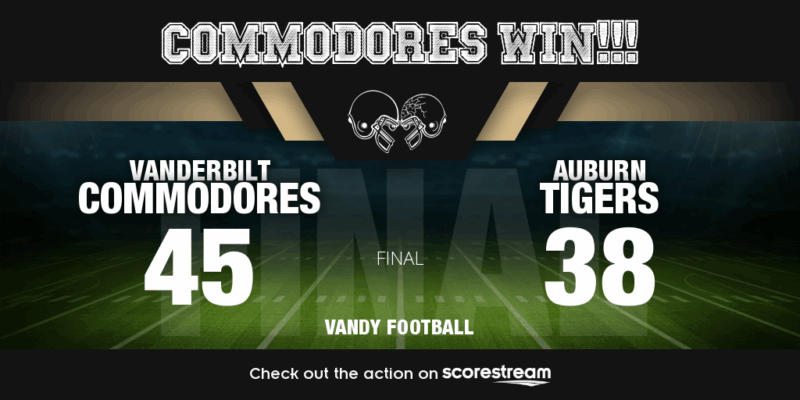 Auburn jumped out to an early 7-0 lead, but the game featured multiple lead changes throughout regulation before Vanderbilt sealed the victory in overtime.